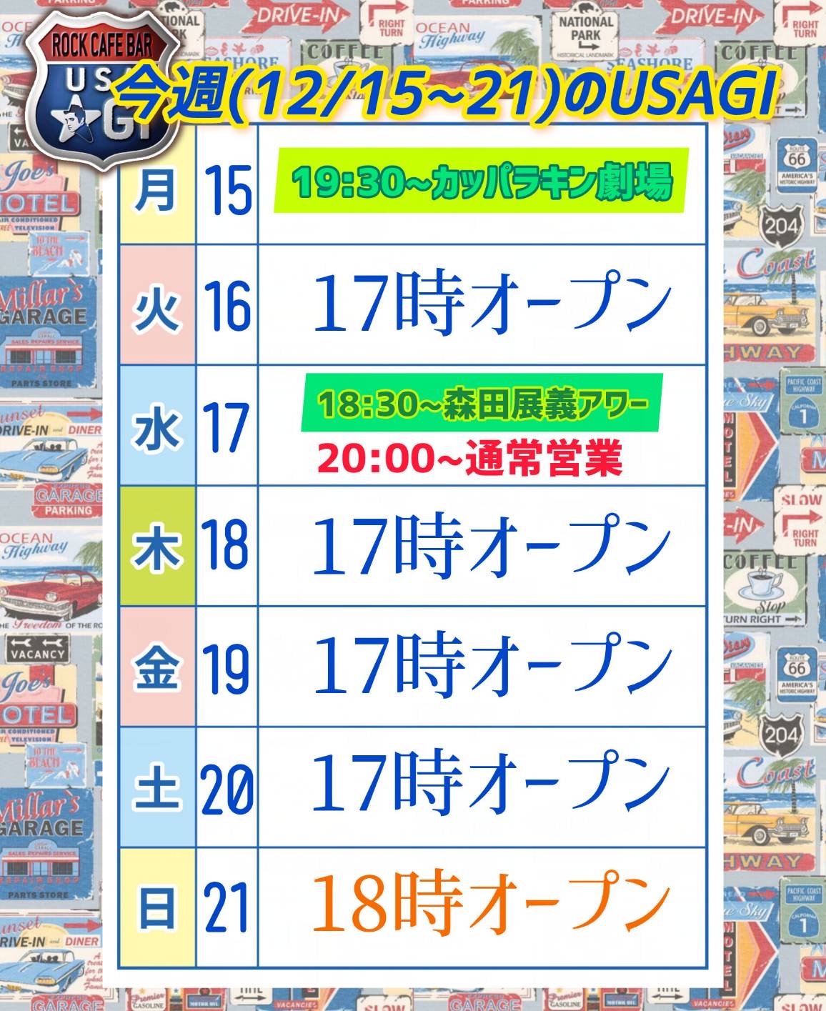 なんとまぁ、もう12月も半ばを過ぎました。バタバタする中ですが、楽しい時間も必要ですね。USAGIで余裕のある時間を過ごしてリラックスしてください。